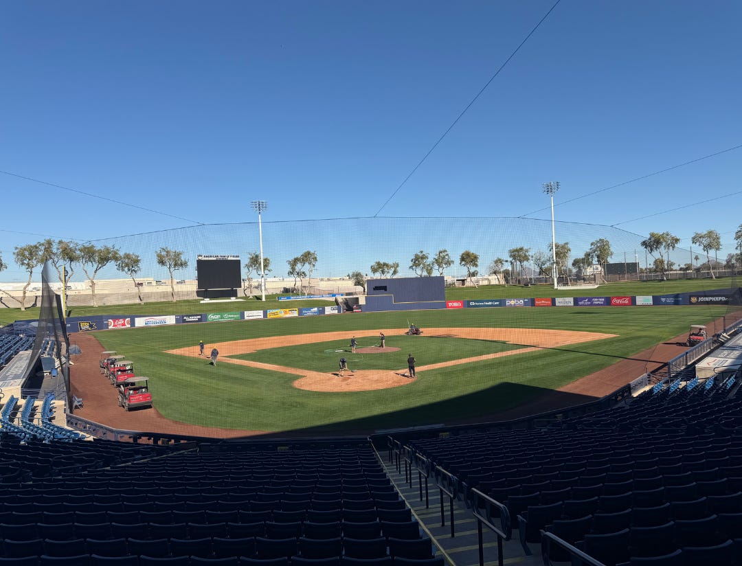Minor league camps were underway. Players are walking between fields. Staff are everywhere. By the time things fully ramp up, there can be 270+ players on these fields, majors and minors combined, for nearly two months straight.